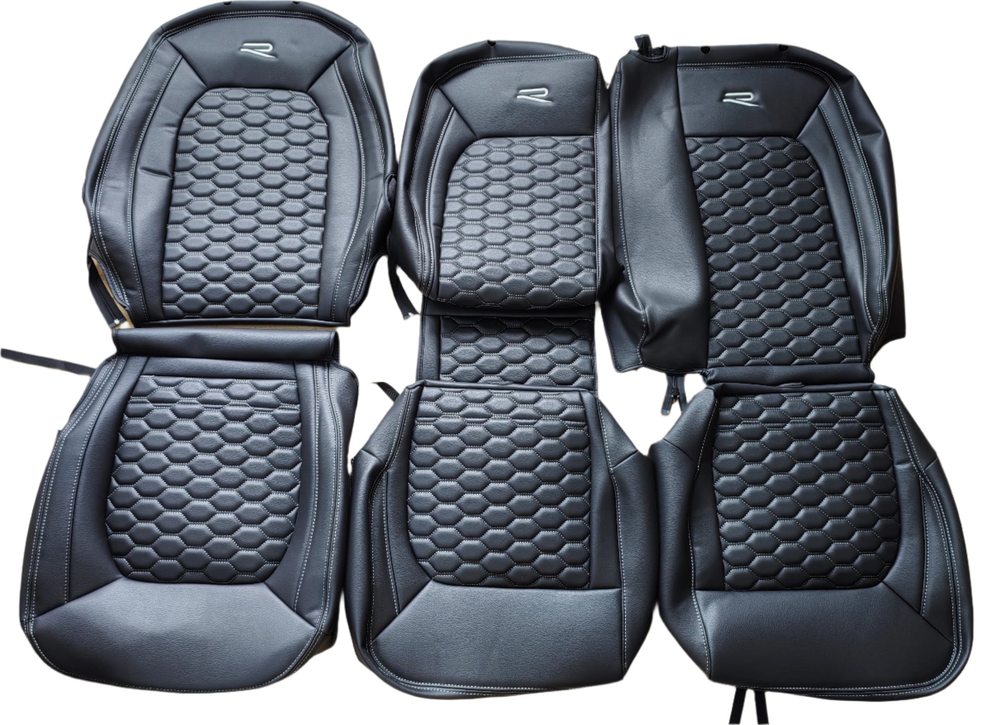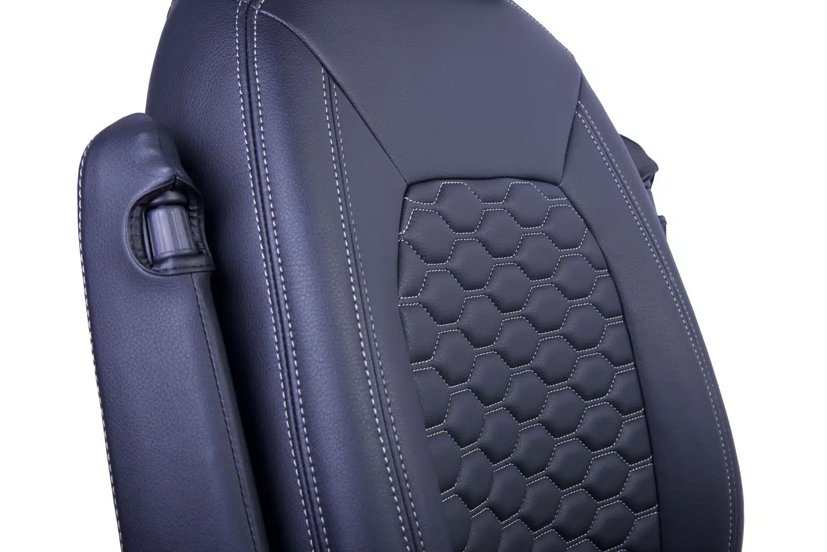 Transform your VW Crafter with a sleek modern hexagon-stitched seat covers, designed with comfort and style in mind. Upgrade your driving experience effortlessly.